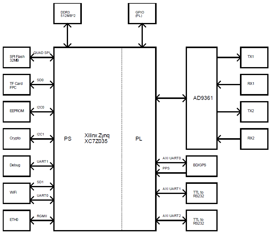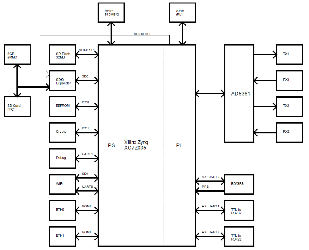 近期为客户开发了两款基于Xilinx Zynq XC7Z035 FPGA及ADI AD9361的软件无线电平台,其中一款适用于手持应用,另一款适用于车载应用,两款产品均支持WiFi接入及北斗/GPS定位。由于是定制产品,所以本文无法给出完整型号及PCBA的图片,仅给出产品框图及带有外壳的照片,供读者参考。